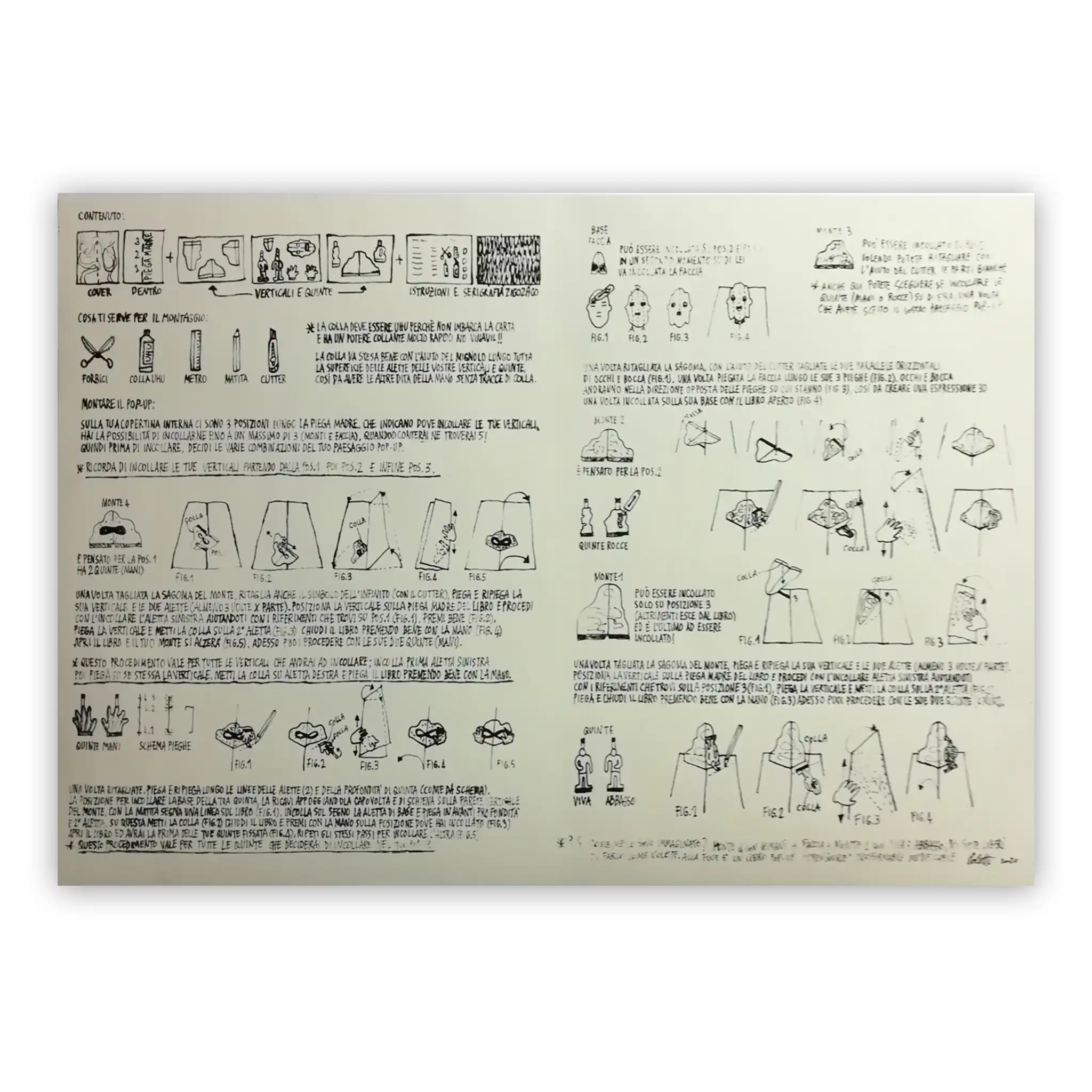 VIVA e ABBASSO is full of rocks and water, mountains and presences, faces and hands—entirely handmade in a limited artist edition. From the drawings that compose it to the screenprinting frames that allow its one-color reproduction.