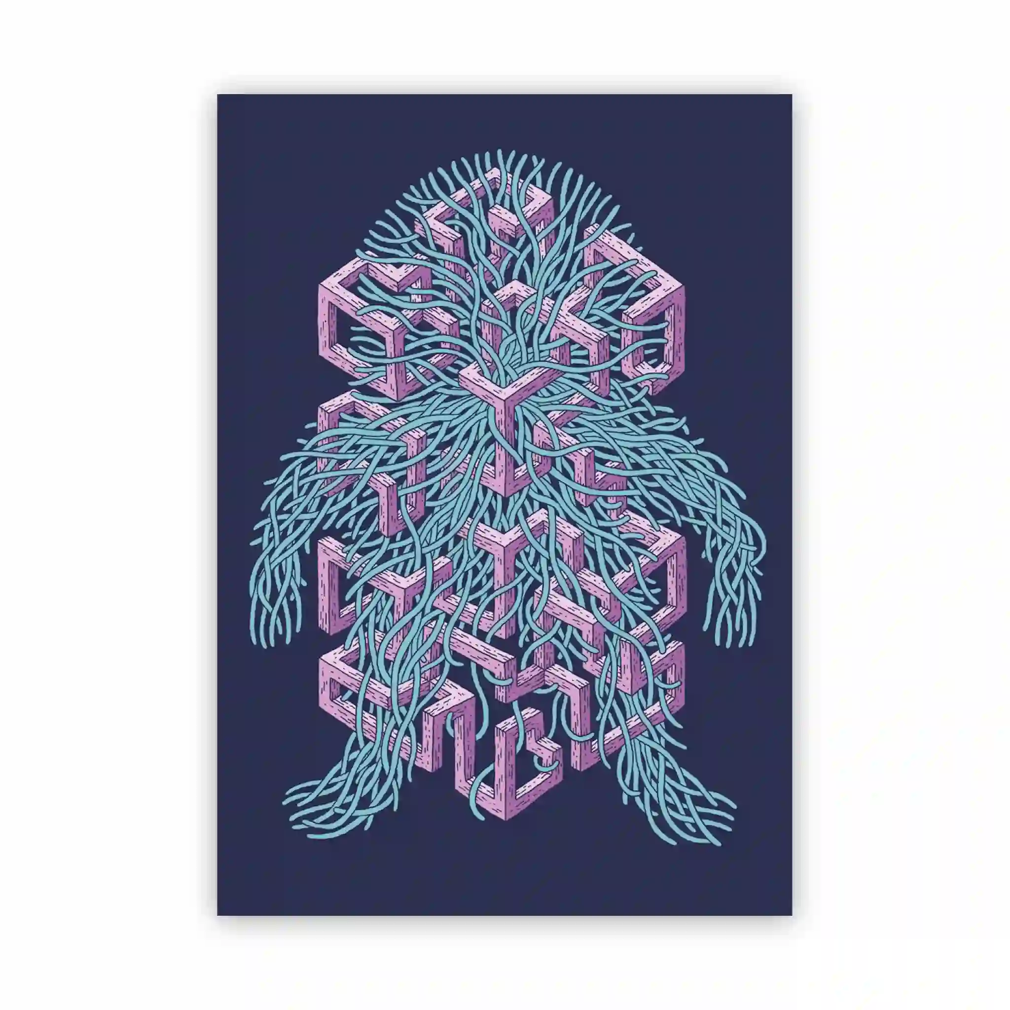 This is genesis according to Jesse Jacobs, his very own creation myth. “And Thus Thou Shalt Know the Universe and the Gods” tells how the earth, with its “ani-mals” and “u-mans,” came into being as a delight and exercise for three deities who, under the supervision of their master and advisor, practice psychedelic molecular compositions, playing with silicon, carbon and impossible dimensions hidden within each other. A visual journey into a cosmos populated by capricious, competitive, but also sweet and empathetic deities, who quarrel with each other for the best successful task and their supervisor's approval.