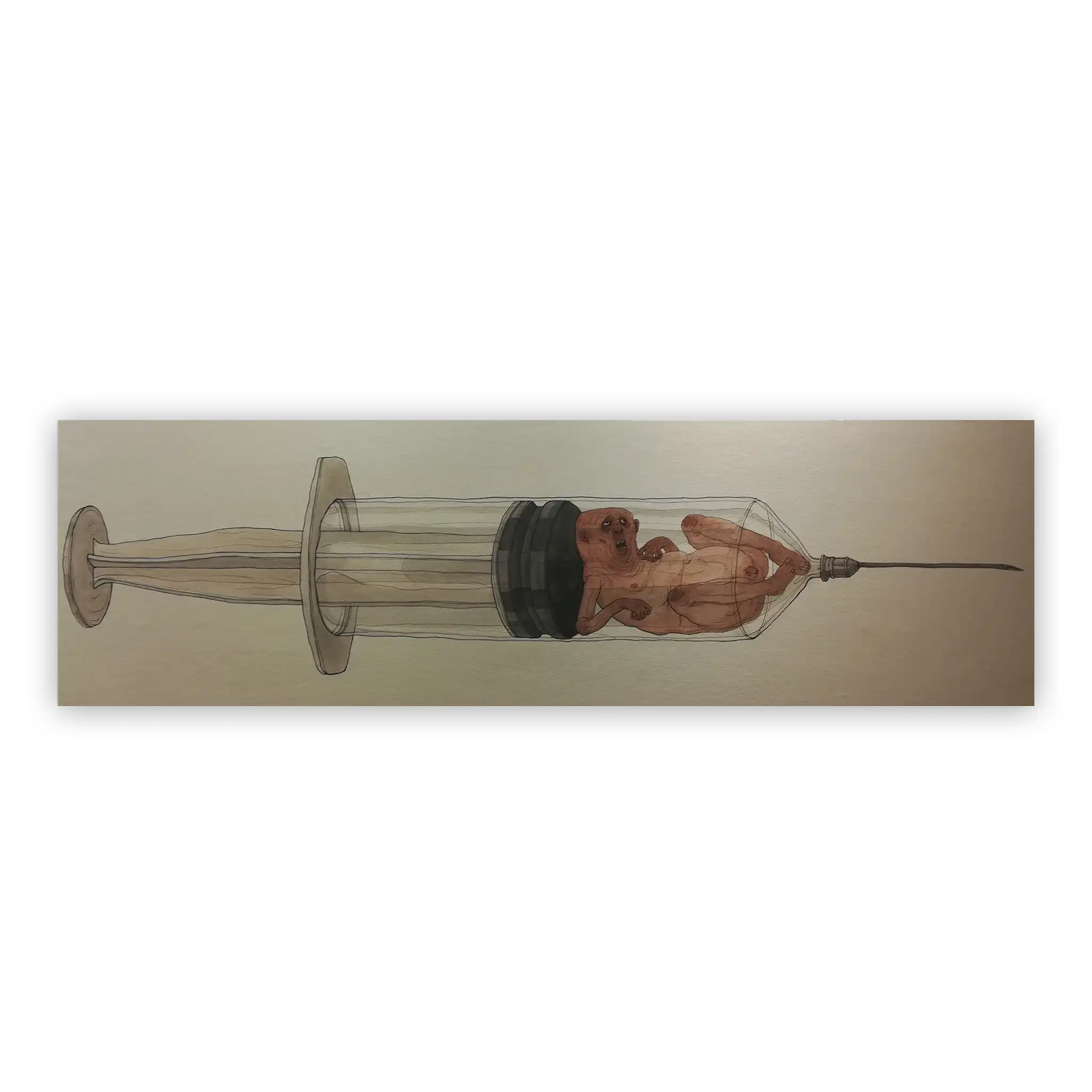 The original drawing on paper is welded onto a 4 mm thick panel of vegetable cardboard, which is fixed in turn on a 5 x 2 cm wooden frame.