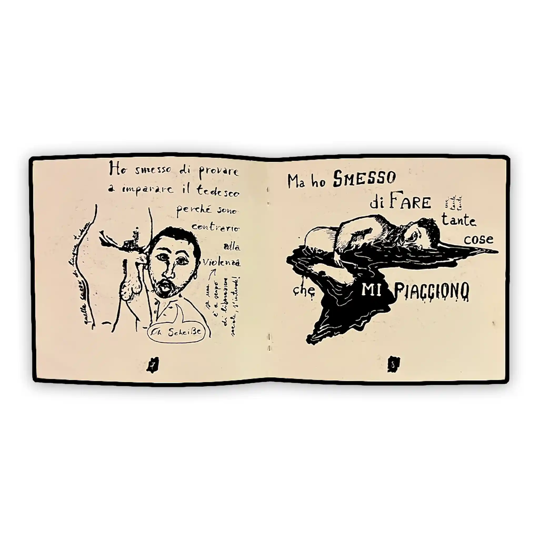 The author of this fanzine usually does not work in visual arts but in quantum physics — a discipline that, in many ways, resembles art due to its constant need for research and significant demand for creativity. In this case, the researcher’s creativity has been channeled into illustrating a brilliant collection of thoughts on the theme of “quitting.”
