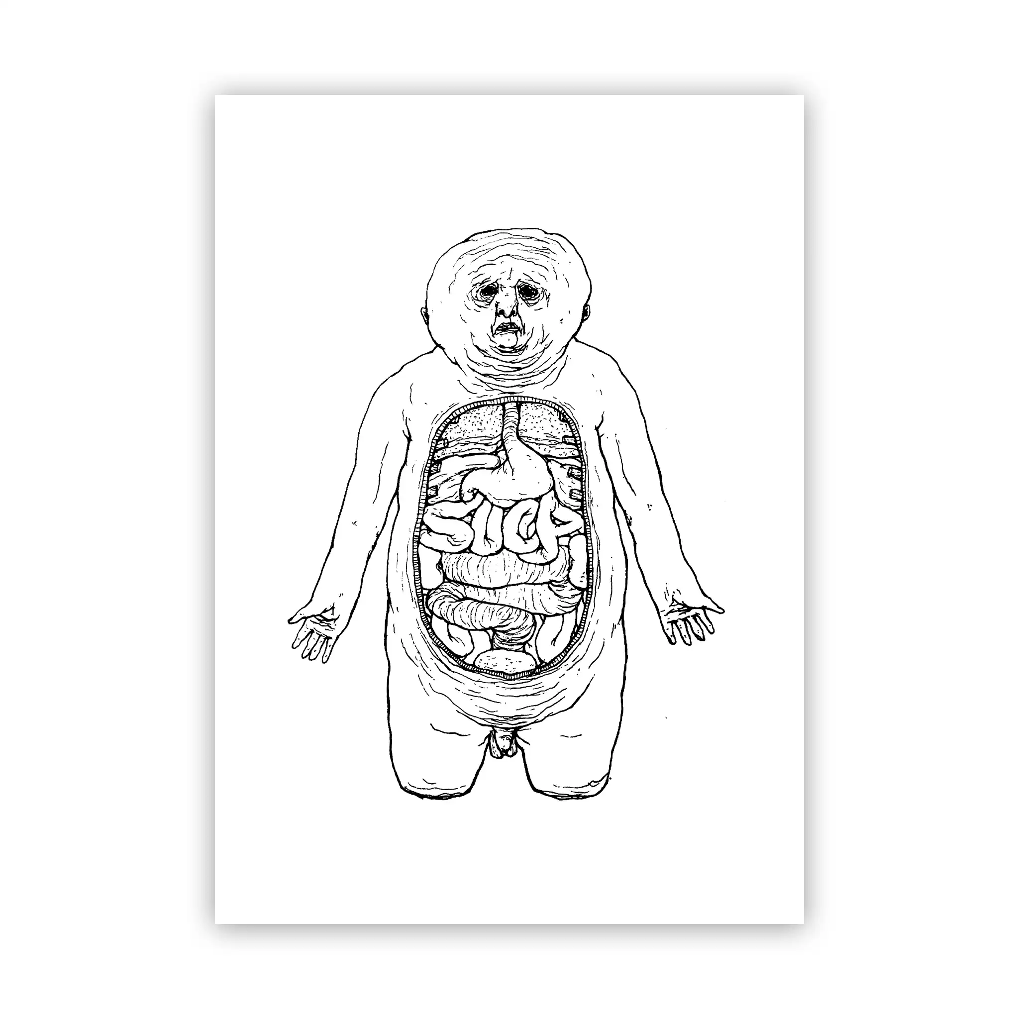 Black print on white T-shirt.