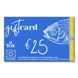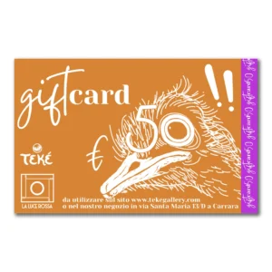 Le nostre Gift Cards sono disponibili in tagli da 25, 50, 100 e 200 euro, adattandosi alle tue esigenze. Sia che tu stia cercando un’opera d’arte unica per arricchire la tua collezione o desideri permettere a qualcun altro di scoprire l’arte contemporanea, le Gift Cards di Teké Gallery sono la scelta perfetta.